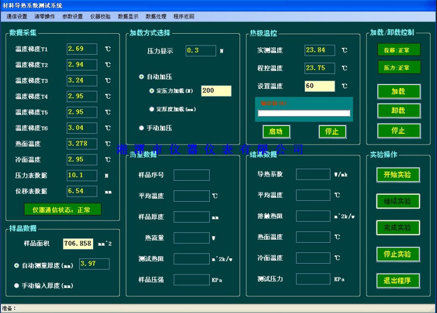 儀器特點(diǎn):自動(dòng)加壓,自動(dòng)測(cè)厚,實(shí)驗(yàn)全自動(dòng)控制。6點(diǎn)溫度梯度檢測(cè),提高測(cè)試精度。可檢測(cè)不同壓力下熱阻曲線,采用優(yōu)化的數(shù)學(xué)模型,測(cè)量材料導(dǎo)熱系數(shù)和熱阻以及界面處接觸熱阻等。